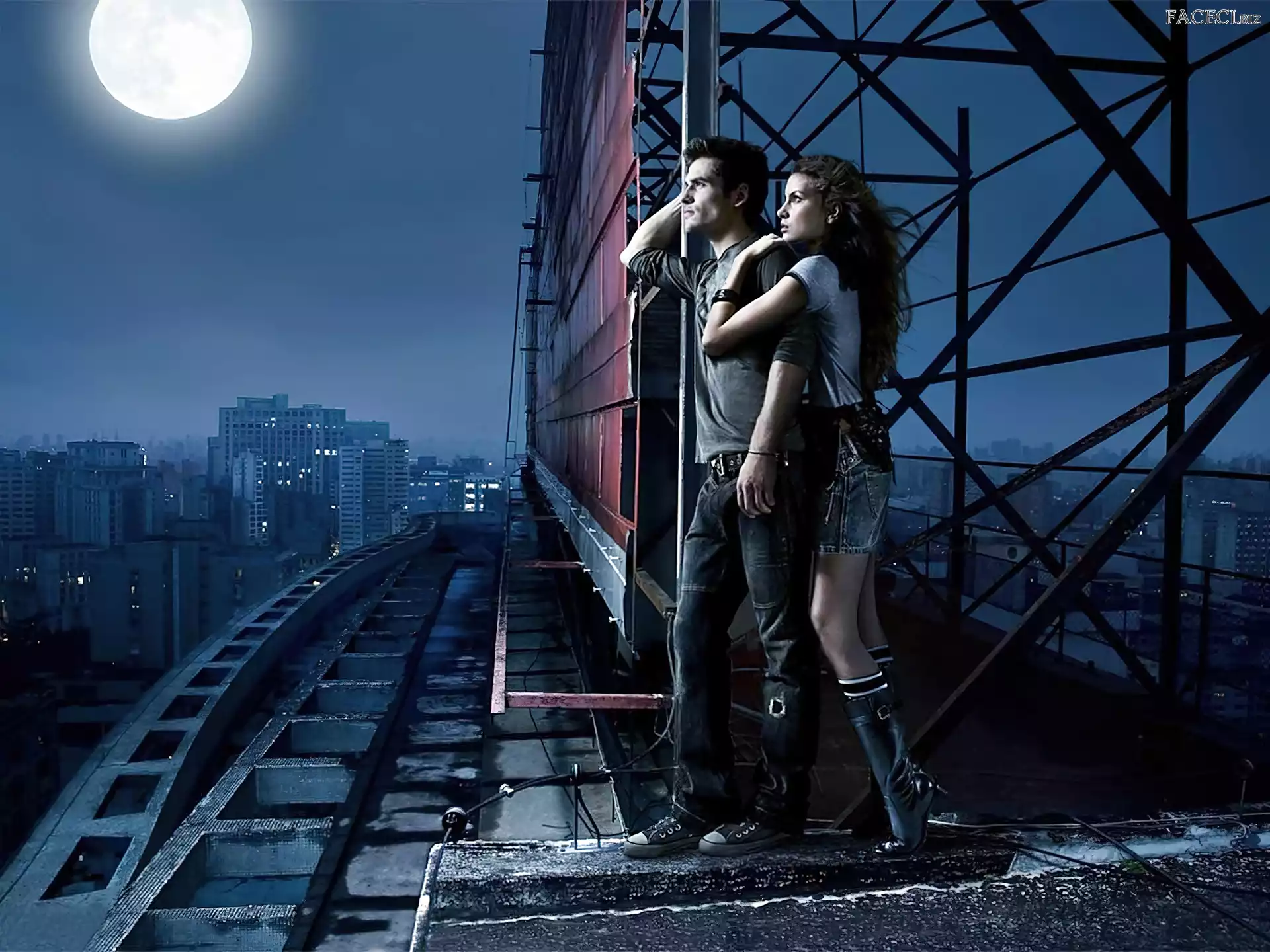 Miasta, Panorama, Kobieta, Księżyc, Mężczyzna - faceci.biz